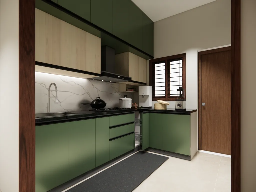 - Main Door: Teak wood frame with teak wood shutter for a premium look.