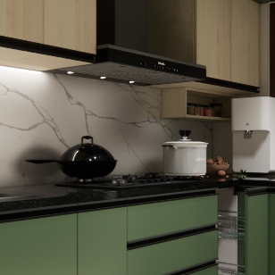 - Fully furnished modular kitchen with inbuilt Elica hob and chimney.